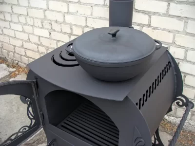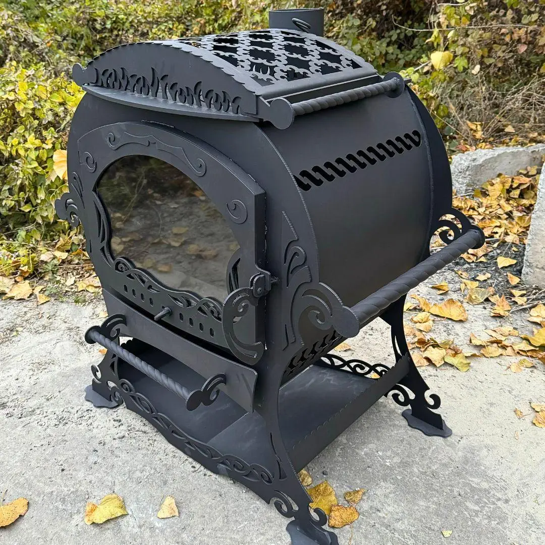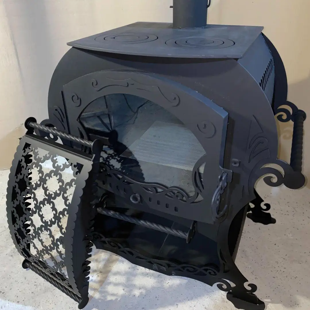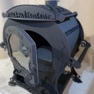 Universali šildymo krosnis-židinys tinka kambario ar pirties šildymui. Ši krosnis yra su dviem degikliais (keli skirtingi skersmenys bet kokio dydžio indams). Ant degiklių galima pridėti akmenų ar vandens šildymo indą. Viska uždengti dekoratyviniu dangčiu. Panoraminis stiklas apvaduotas ugniai atsparia keramine virve. Apačioje yra erdvi malkų dėžė, o židinio šonuose yra patogios rankenos gana sunkiam gaminiui transportuoti.