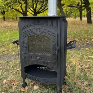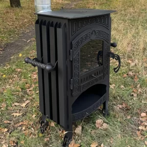 Ilgai deganti malkomis kūrenama krosnelė yra tikras pardavimų milžinas.  Židinys atrodo didingai ir pasižymi nepaprastu graikiškų raštų ornamentu. Graikiškas stilius interjere įkūnija harmoniją ir paprastą eleganciją. Židinys puikiai padės sukurti senovinio stiliaus aplinką.