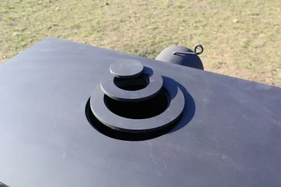 Židinys turi virimo paviršių – vieną degiklį su skirtingo skersmens žiedais bet kokio dydžio indams. Panoraminis stiklas apvaduotas ugniai atsparia keramine virvele. Apačioje yra medinė malkų lentynėlė, šonuose – patogūs turėklai produktams transportuoti. Konvekcinis korpusas leidžia lengvai apšildyti iki 140 kv. m ploto patalpą ir greitai sukurti šilumą bei jaukumą savo namuose.
